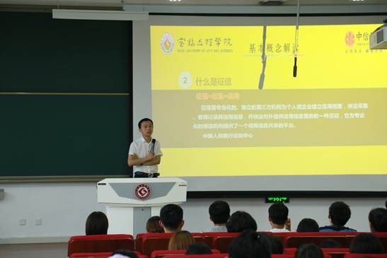 5月23日下午,中信银行公园路支行行长李晓鹏受邀在我校博文楼副楼105教室作了题为“征信在我们身边”的诚信教育主题讲座。讲座由学院党总支副书记薄会颖主持。