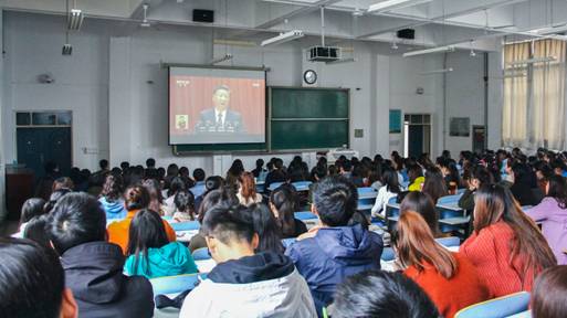 10月18日,全国人民期盼已久的党的十九大胜利召开。上午9:00到12:30,学院党政领导,教师及学生代表200多人在思贤楼119教室一同观看十九大开幕式,校党委副书记栾宏同志参加,集体收看活动由党总支书记郝晓炜主持。