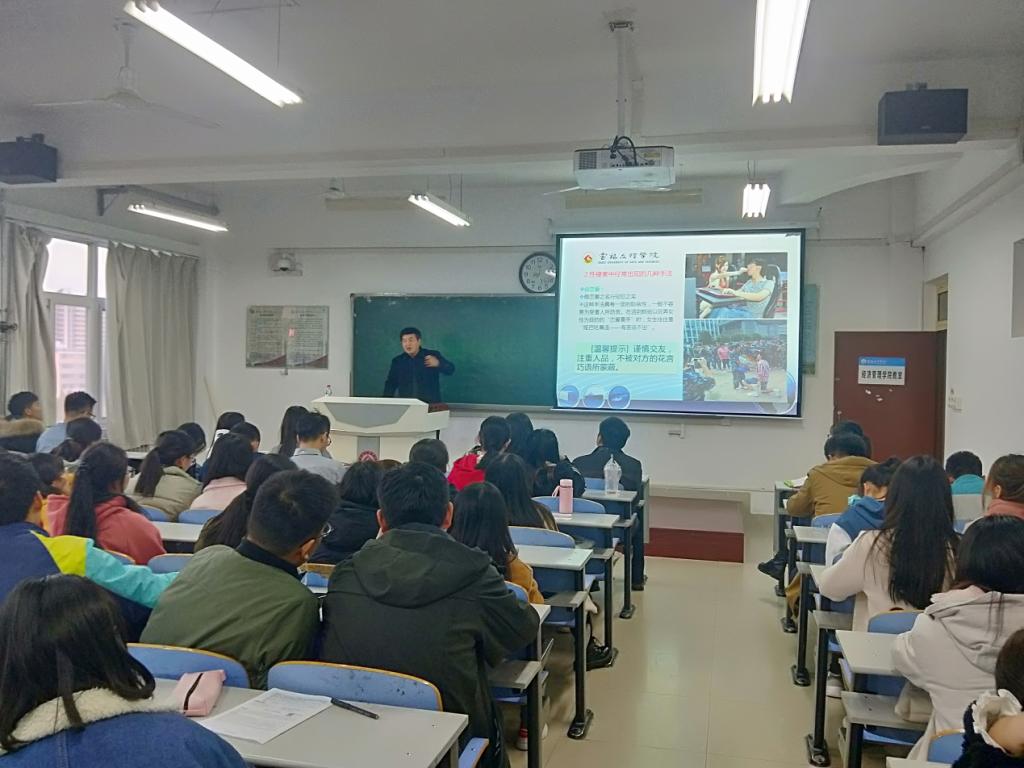 为进一步增强best365官网登录入口师生的安全意识,提高师生的风险防范能力,11月22日下午,学院在思贤楼502室举行安全教育讲座。校保卫处处长樊林森应邀作了题为《大学校园安全危机与应对策略》的专题讲座,党总支书记郝晓炜、副书记薄会颖、全体辅导员和学生干部近百人聆听了讲座。