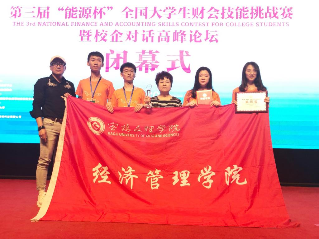 5月25—26日,由中国商业会计学会主办的第三届“能源杯”全国大学生财会技能挑战赛在西安石油大学雁塔校区举行。best365官网登录入口会计系主任马焱教授带队,白银锋、牛军让老师指导的2016级会计学专业杨仕琛、徐紫娟、王进、冯晨曦四位同学组成的代表队以初赛第一名的成绩进入决赛,最终best365官网登录入口代表队荣获挑战赛一等奖,白银锋、牛军让被评为优秀指导教师,学校被评为优秀组织单位。
