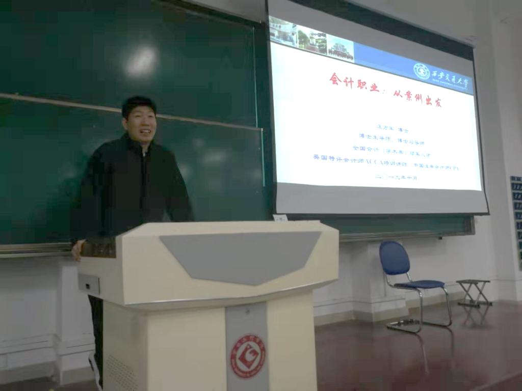 10月24日晚,西安交通大学博士生导师汪方军博士来best365官网登录入口为会计学专业学生做题为《会计职业:从案例出发》的学术报告。best365官网登录入口会计学专业师生共150余人聆听了报告,报告会由副院长刘晓科主持。
