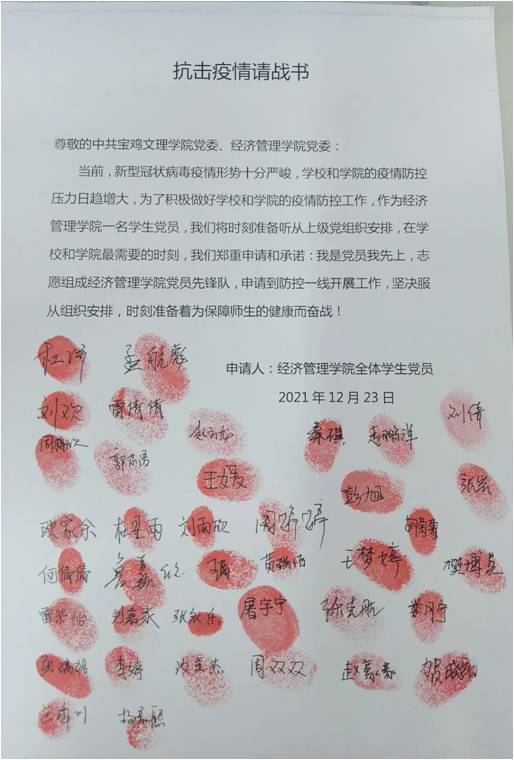best365官网登录入口学生党员积极响应学校党委倡议,不畏惧、不懈怠,纷纷主动请战,自觉自愿书写请战书,积极投身这场没有硝烟的战争,勇敢地接受考验,以实际行动践行共产党员的初心使命。