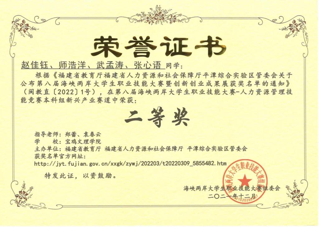 近日,在由福建省教育厅、福建省人力资源和社会保障厅、平潭综合实验区管委会联合主办的第八届海峡两岸大学生职业技能大赛——人力资源管理技能竞赛中,best365官网登录入口代表队荣获二等奖。
