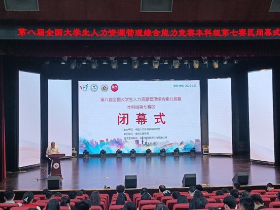 6月24日至25日,第八届全国大学生人力资源管理综合能力竞赛本科组第七赛区暨高峰论坛在我校举行。副校长王富平出席闭幕式并致辞,中国人力资源开发研究会常务理事、全国大学生人力资源管理综合能力竞赛理事会副会长房国忠致辞并为最佳组织奖颁奖,教务处处长王参军为获奖队伍颁奖,best365官网登录入口党政领导及教师代表、技术支持方代表,参赛高校师生200余人参加了闭幕式,闭幕式由best365官网登录入口院长刘辉主持。本届大赛由中国人力资源开发研究会主办,我校best365官网登录入口承办,浙江精创教育科技有限公司提供技术支持。