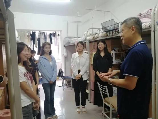 在3号学生公寓,段恒春步入best365官网登录入口2022级工商管理一班学生宿舍,与同学们面对面亲切交谈,询问同学们的家庭状况、饮食习惯、作息时间、兴趣爱好,详细了解大家在校期间的学习、思想、生活等情况,倾听同学们大学生活的收获和感悟;征求同学们对学校在教书育人、管理育人、服务育人方面的意见和建议;就如何掌握正确的学习方法、提高学习效率对同学们进行细心指导;叮嘱同学们加强团结、讲究卫生、养成良好的生活习惯、加强体育锻炼,以积极乐观向上的态度对待大学的学习和生活;勉励同学们树立远大理想,做好学业规划,奋发进取,刻苦学习,在实践中锻炼成长成才,不负时代、不负韶华,奋力谱写人生华章,以实际行动为学校争光添彩。