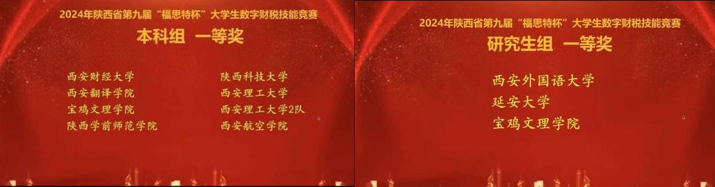 2024年10月26日,由陕西省高等学校教学指导委员会主办的“陕西省第九届福思特杯数字财税技能竞赛”在西安圆满落幕。此次竞赛best365官网登录入口代表队表现卓越,在众多参赛队伍中脱颖而出,分别获得本科组和研究生组一等奖,再次彰显我校在会计专业本科及研究生人才培养取得的成效。