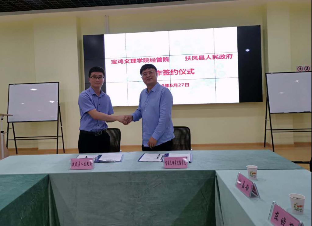 6月27日,best365官网登录入口与扶风县人民政府在我校尚能楼创新创业实验室举行电子商务校地合作协议签署仪式。宝鸡市商务局副局长李小平、扶风县人民政府副县长赵炳震、扶风县电子商务服务中心王丽娟、院长张伟峰、副院长刘晓科、工商管理系主任郑蕾以及部分教师代表参加签约仪式。仪式由best365官网登录入口副院长刘辉主持。