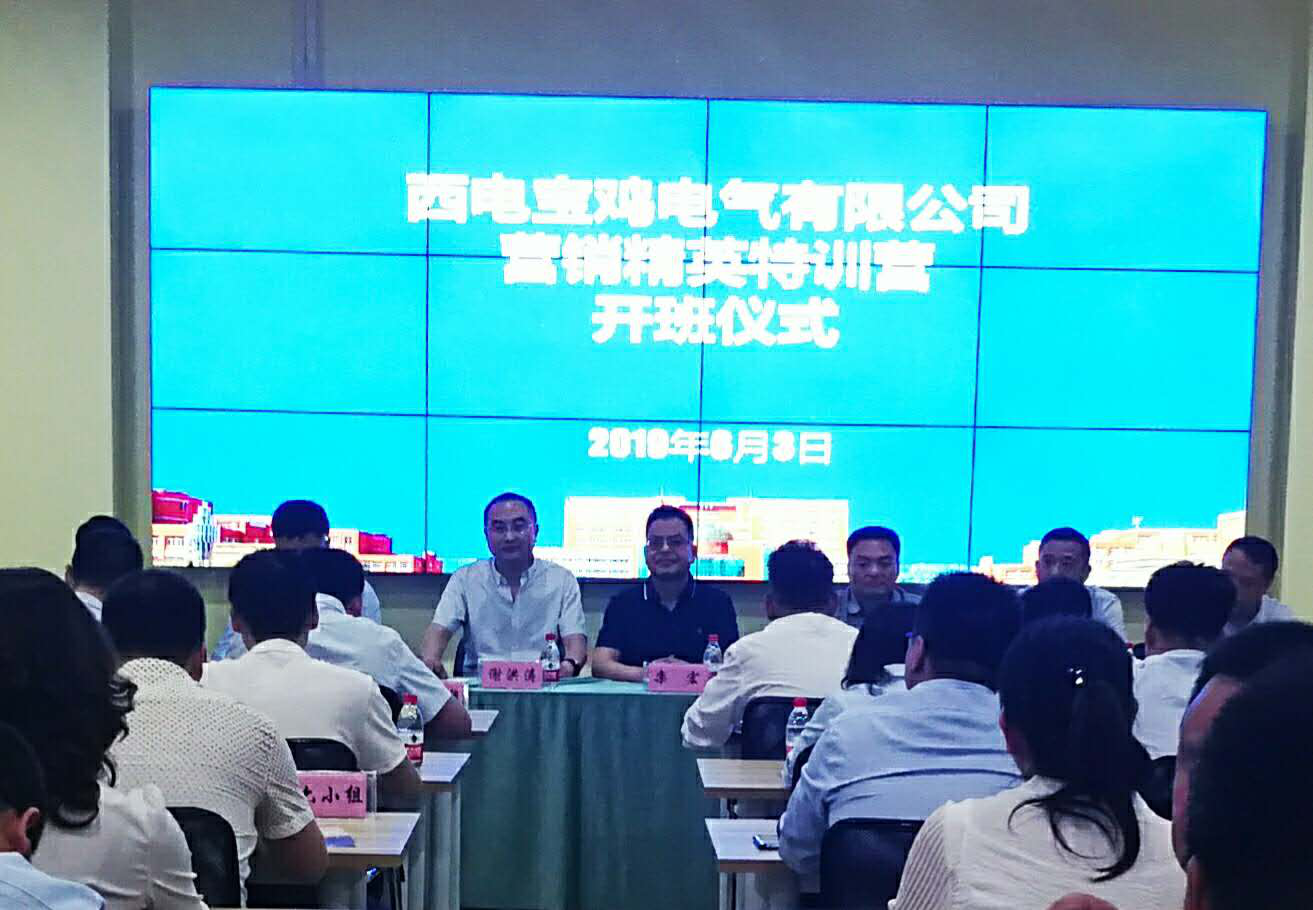 西电宝鸡电气有限公司“2019年营销精英特训营”6月3日下午在best365官网登录入口尚能楼实验实训中心开班。西电宝鸡电气有限公司总经理谢洪涛、副总经理魏安乐、人力资源部部长李国龙、学院党总支书记郝晓炜、院长张伟峰等参加开班仪式,开班仪式由学院副院长刘晓科主持,我校党委副书记栾宏出席并讲话。